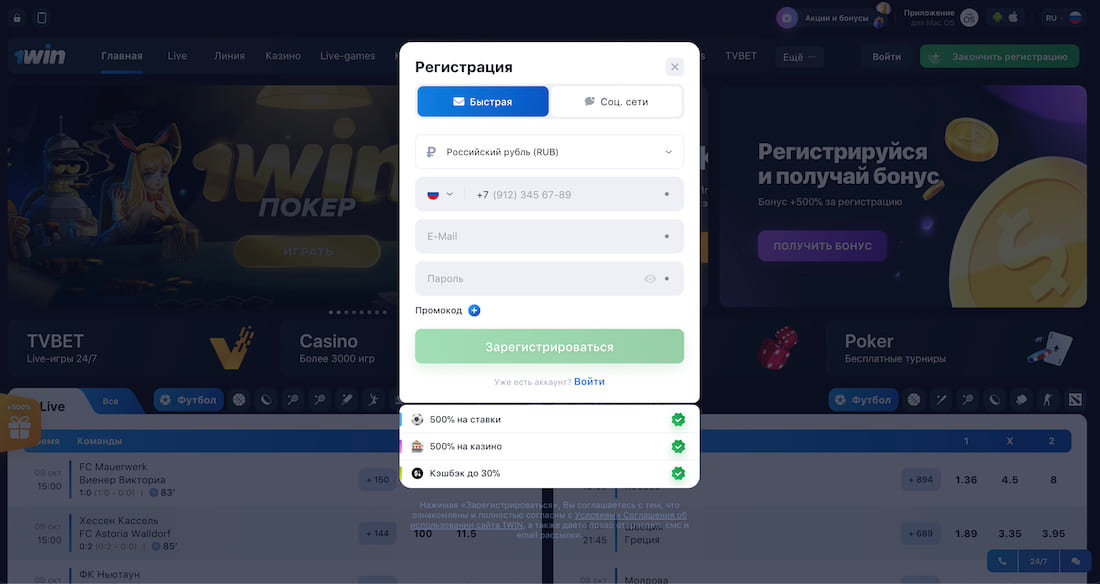 Если у вас нет своего промокода, загляните в интернет — там часто делятся рабочими комбинациями. Но проверяйте, чтобы код был актуальным. После регистрации начинается самое интересное. Теперь вам доступна вся букмекерская контора 1вин: